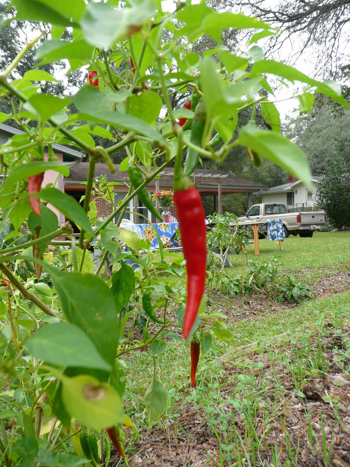 For most of the past three weeks, I laid the overalls aside to complete a home renovation. In preparation for my sister's belated wedding party here in Tallahassee (she lives and was married in the Seattle area), our family frantically renovated both our kitchen and bathroom. On more than one occasion, I found myself at Lowes before the sun came up and worked well past midnight in order to achieve some semblance of order before the party. Needless to say, I didn't have much time left over to garden. And yet, things continued to grow and to ripen.