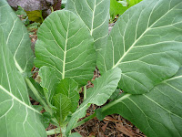 Collards. These are just coming on line. I'm looking forward to feasting on these. Collards were the first kind of green that I ever grew. Whenever I visit my grandmother, collards are always on the menu.