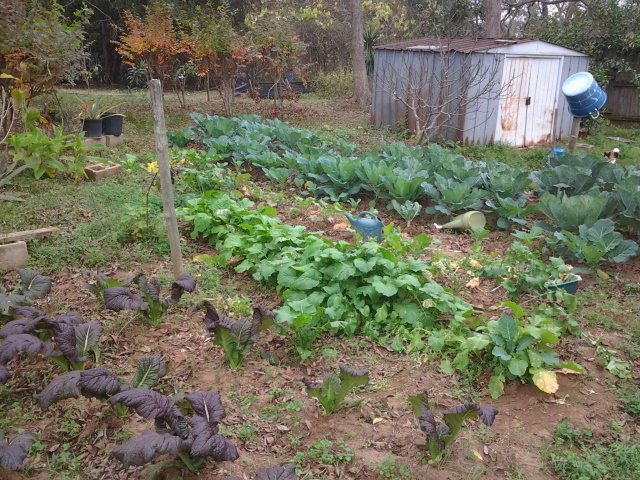 Purple mustards (Mr Bellamy's new favorite), turnips, collards, cabbage, onions, grapefruit, tangerines, she pointed everything out. "I just like trying things she said." She's been gardening her whole life. Turns out she's the mother of my mother's co-worker. Small world. When I came around the side of the truck, she hollered from her front porch, "Have I seen you on the computer? My daughter's Gloria; she works with your momma at the hospital; you baked her cookies when you were just a young'in."