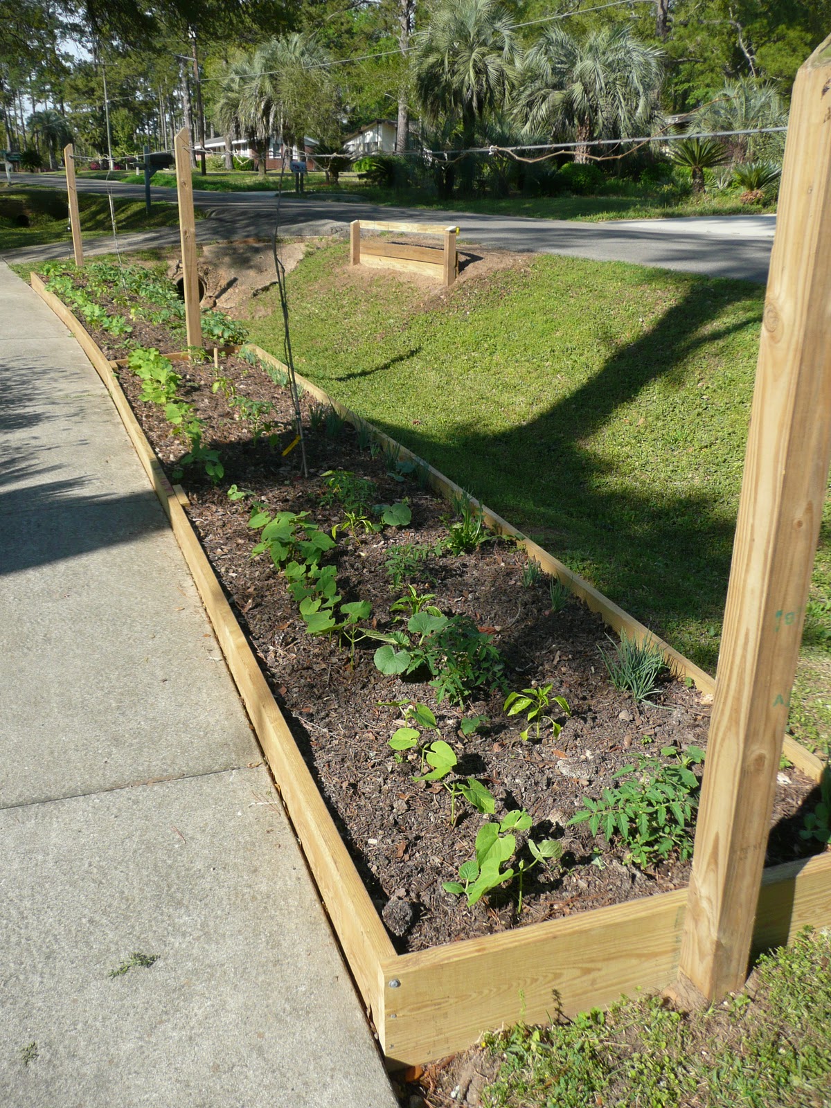 Vertically Integrated Growing: Raised Bed and Grape Vines adjacent Sidewalk. |