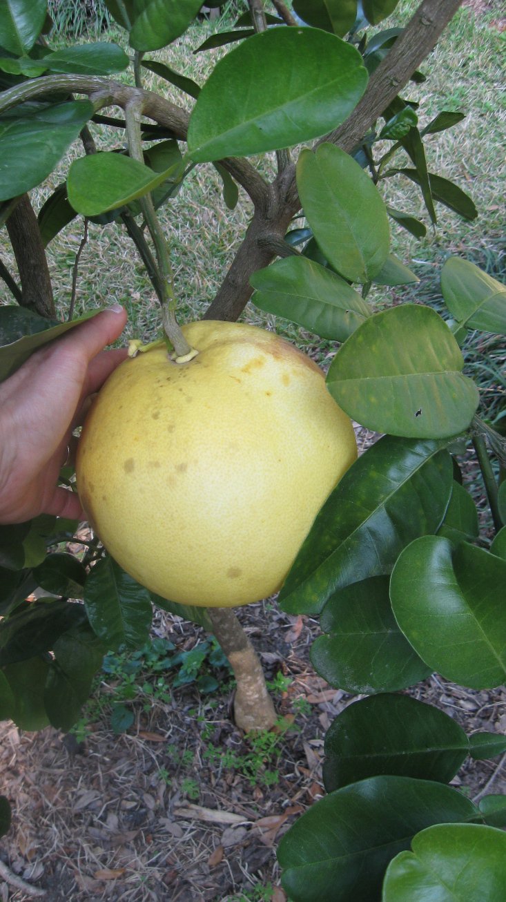 | Pummelo (or Pomelo) depending on who you ask. A giant grapefruit without the sourness. Yum! |