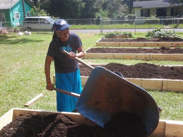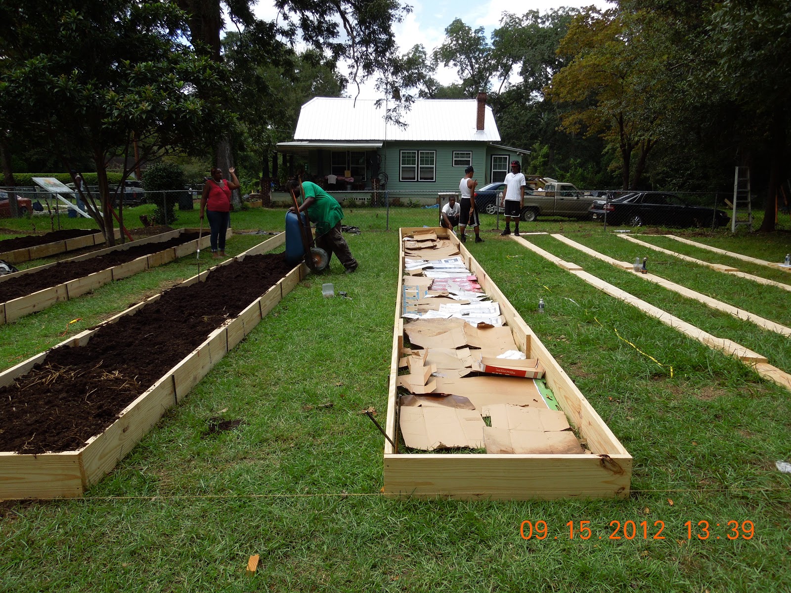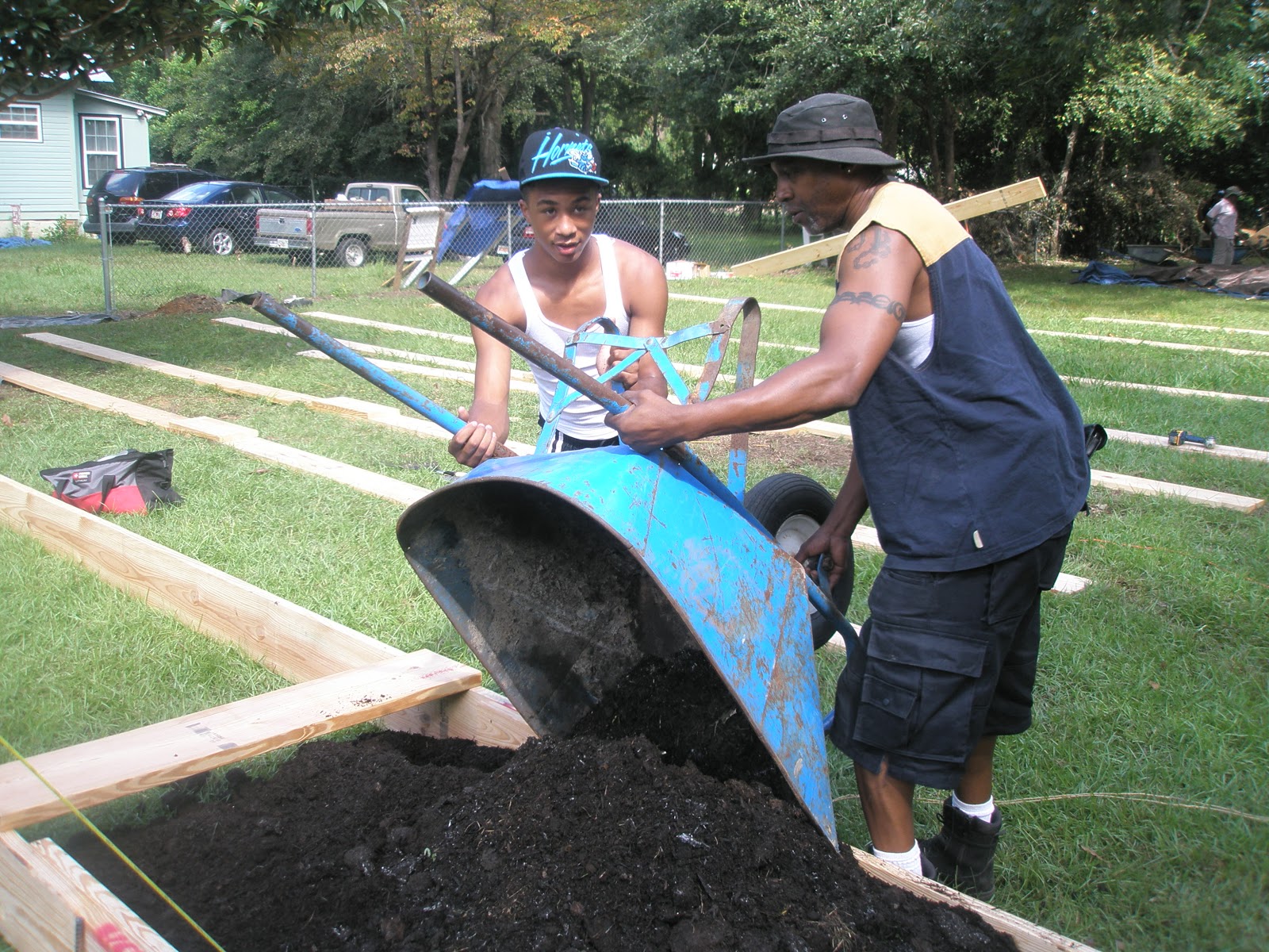 Since mid September, the crew has been planting, hauling compost and wood chips, building an outdoor classroom/meeting space, dealing with caterpillars, building more raised beds and engaging the neighborhood. (I nearly forgot: before the cook-out and workday, the youth did a workshop on door-to-door outreach with Sundiata from E.D.I.F.Y Mentoring, and then promptly knocked on doors and met the farm's neighbors to invite them to the cookout and to solicit their ideas about what kinds of vegetables the youth should plant. This list served as our initial planting list because core to the mission of iGrow is to provide access to healthy food amidst one of Tallahassee's food desert areas).
