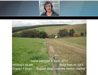The pictured fence line separates two farmers' dairy pastures. Until the year pictured, these two fields had been managed the same. This year, the field on the right was re-seeded (to fill in ruts & gaps in the grass) and fertilized with "conventional," chemical fertilizer (your standard "seed and feed"). This is the standard and recommended practice. On the left, per Ingham's suggestion, the field was not reseeded or chemically fertilized. Instead, it was inoculated with beneficial soil micro-biology by a few applications of compost teas. By late in the growing season, the grass on the left had grown so prolifically that the farmer had grazed cows through the field 5 times and, at the time of the photo, just weeks later, was 6-12" tall again. The farmer of grass on the right, which had been chemically fertilized was only able to graze cows on it once, and by season end, it was looking brown and patchy, in need, again, of re seeding and fertilization.