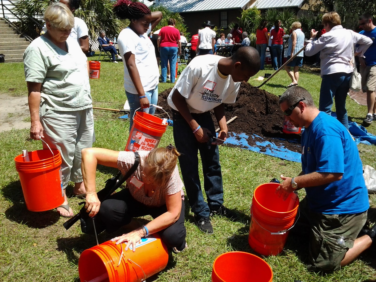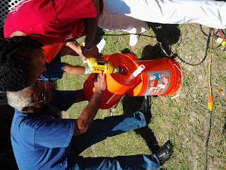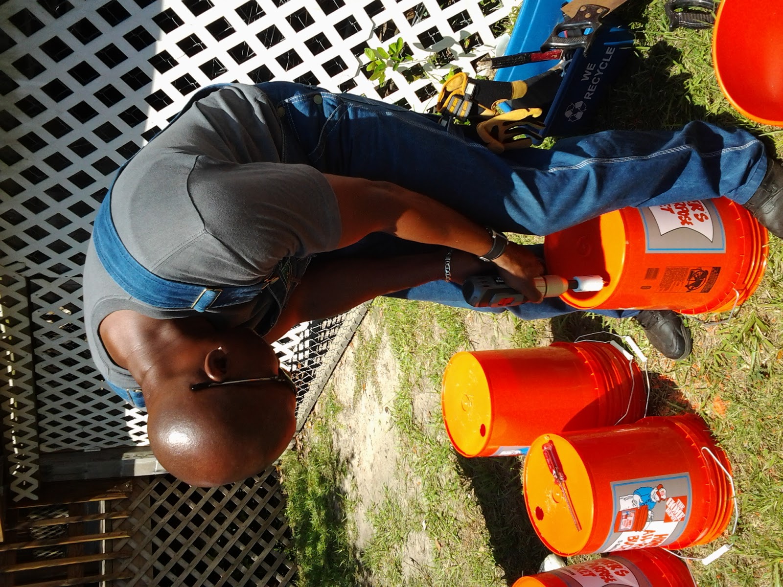 Last Friday I oversaw a September 11th memorial service project building, filling, and planting garden buckets for shut-in seniors-- so even those who can't bend too well, don't have much space, etc can grow a few vegetables to improve their diet. Volunteer Leon coordinated the entirety of the event that involved a memorial service plus two other service projects: emergency preparedness buckets and "Wow" care packages for troops in Iraq.