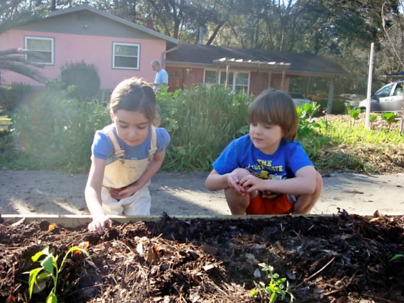 +Anna speaking about she and her three-year-old sister, "We're the gardening sister-pair. We like to garden."