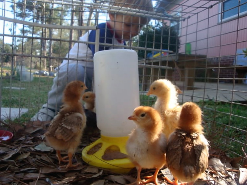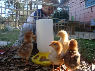 +After all the children left, my father informed me that Anna attempted to leave her phone number with him so he could call her when the chickens started laying. She held all of them-- even our rooster "hen" whose new head-pieces have given his (!) identity away.